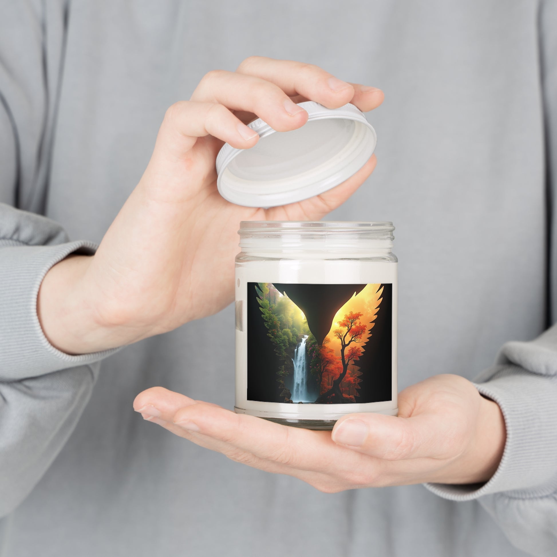 Made to soothe long and stressful days, this custom candle jar can accommodate all your ideas, artwork, or inspirational quotes on its custom candle label. The candle itself is made 100% with a natural soy wax blend and cotton wick. Choose between fragrances such as Vanilla Bean, Comfort Spice, Sea Breeze, Unscented, Fresh Balsam, Spiced Pumpkin Ginger, Pink Grapefruit and Eucalyptus Lavender Herb.