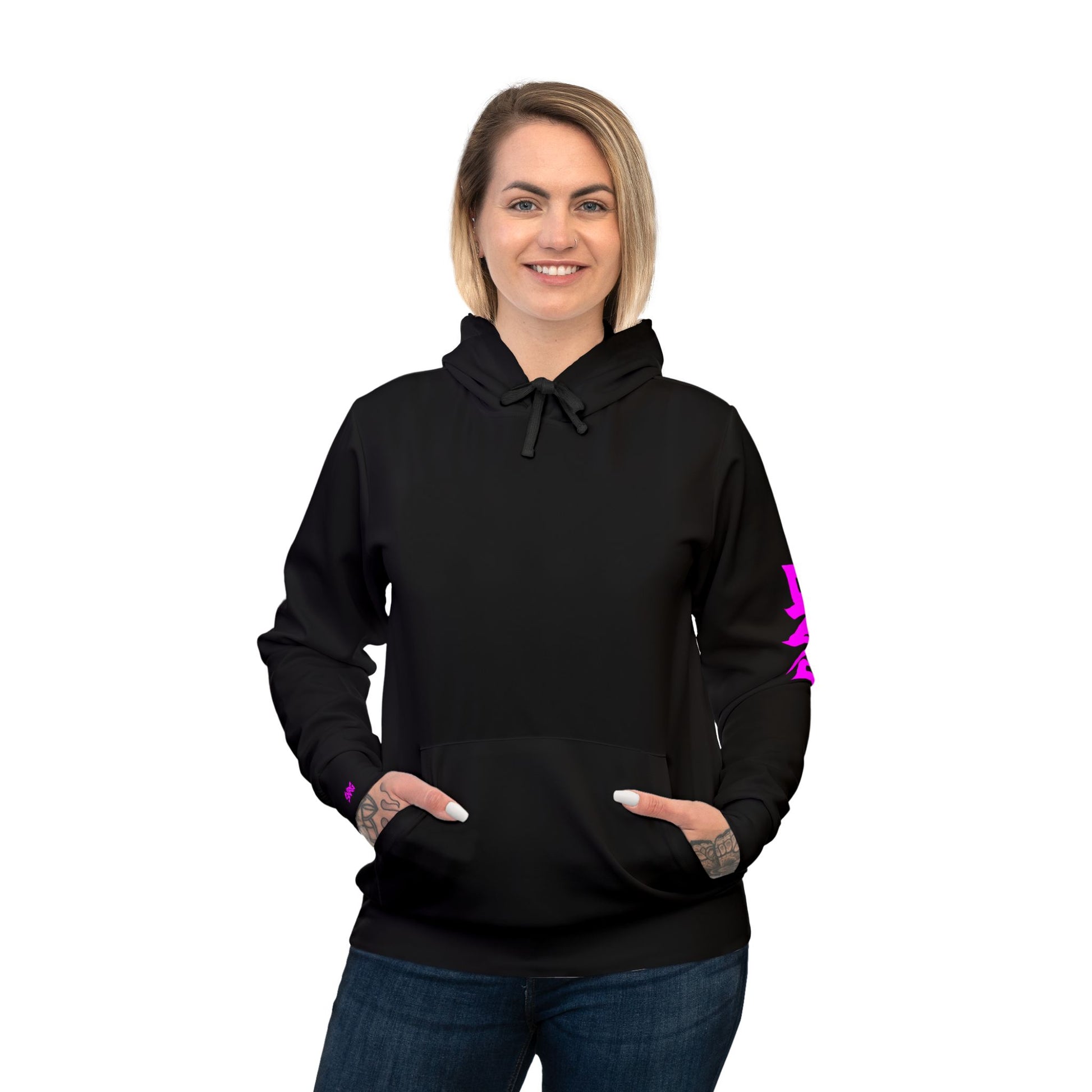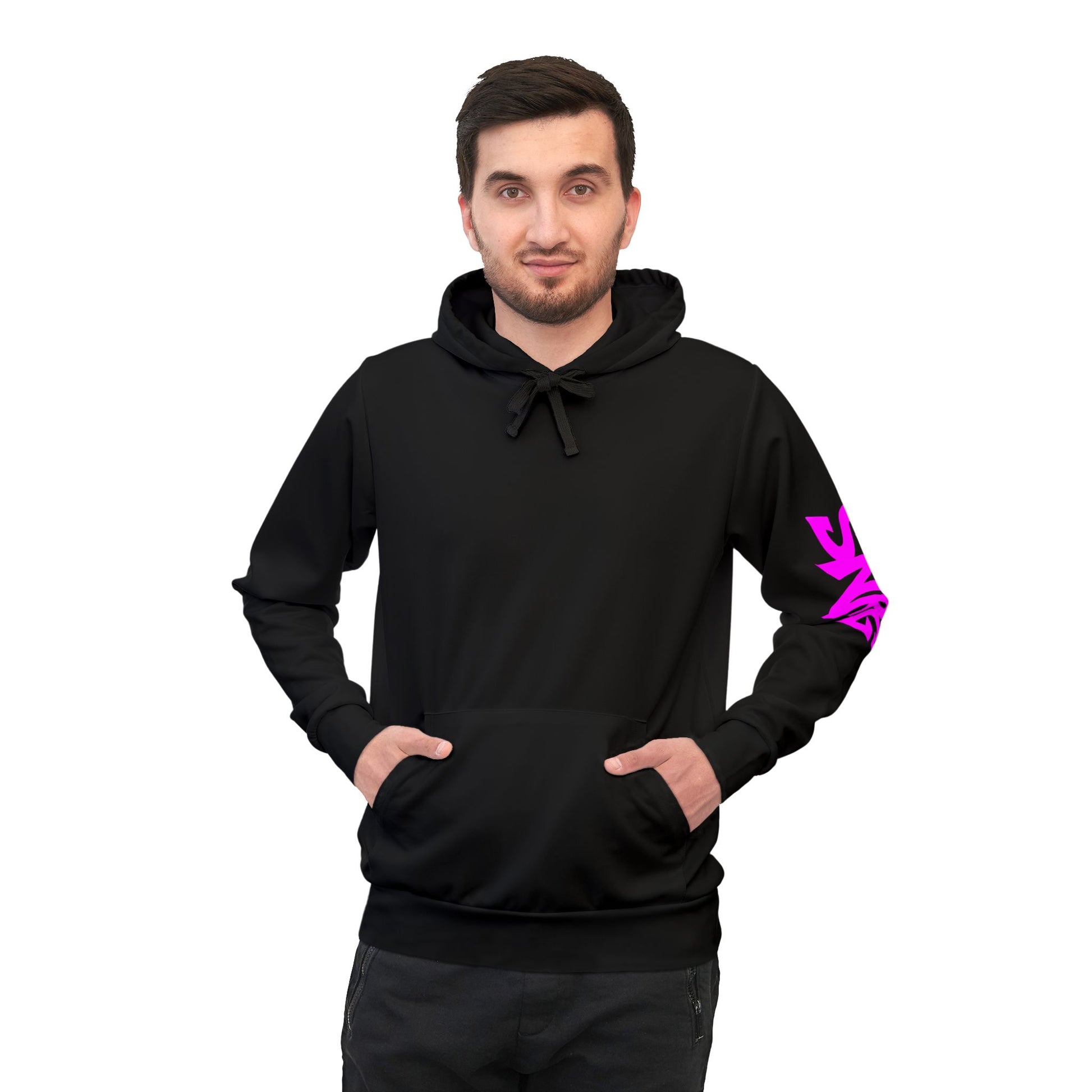 These unisex athletic hoodies come with a 95% recycled polyester and 5% spandex fabric blend that is as comfy in the gym as it is on a casual day out. Each hoodie comes with a flat black drawstring, a sewn-in size and care label, as well as a custom-printed label on the inside of the waistband.
